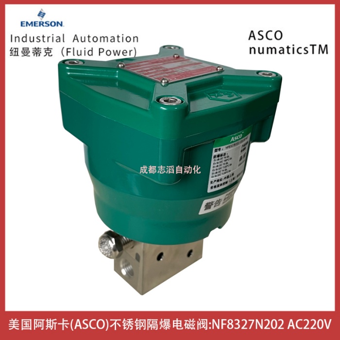 NF8327B202线圈电压AC220V美国阿斯卡ASCO不锈钢隔爆电磁阀技术参数简介:管径1/4、U-通用型、密封材料FPM(氟橡胶)、温度范围-20道120摄氏度、线圈功耗等级MP-中等功耗(5.7-5.8瓦)、通径5.7mm、流量系数0.45立方米.小时、工作压力0-10bar、阀体材料不锈钢、直动式、基本流量、平衡提升结构、工作介质空气,惰性气体,水,油、响应时间75-100ms、粘度可达65cst(mm²/s)、接口螺纹NPT、线圈NF(隔爆型-316SS外壳ATEX+IECEX(EN/IEC60079/61241))、线圈电压24VDC、电气连接1/2NPT螺纹、货期6-8周