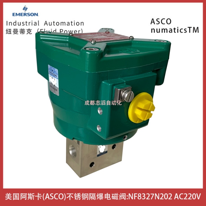 美国ASCO电磁阀(NUMATICS)327系列技术特点:符合IEC61508系统安全规范TUV认证等级SIL-4、NAMUR安装方式,用于大流量角行程单作用执行器的控制,工作压力范围宽,无zui小操作压差、PTFE平衡环,石墨填充PTFE密封,减少摩擦和黏附、线圈为金属外壳,classH绝缘材质、低功耗设计、低温应用设计、标准DC线圈带峰值抑流二极管及监护外壳、电磁阀符合相关的EC规范