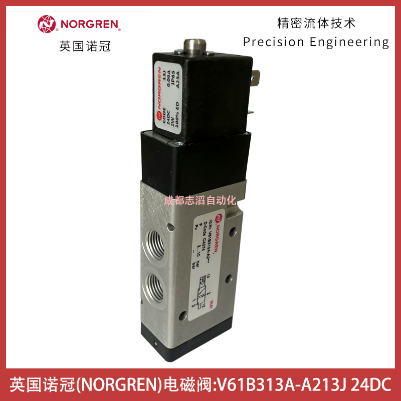 V61B313A-A2线圈型号13J电压24VDC英国诺冠NORGREN电磁阀技术参数:功能为NO、接口为G1/4、驱动方式为电控/气复位、先导供气内先导、先导排气非集中供气、流量1300l/min、工作压力2-10bar、阀体重量0.29kg、配诺冠普通线圈13J(22mm工业线圈、电压为24V直流、线圈代码为13J、输入功率/保持功率2W、型号为QM/48/13J/21)!