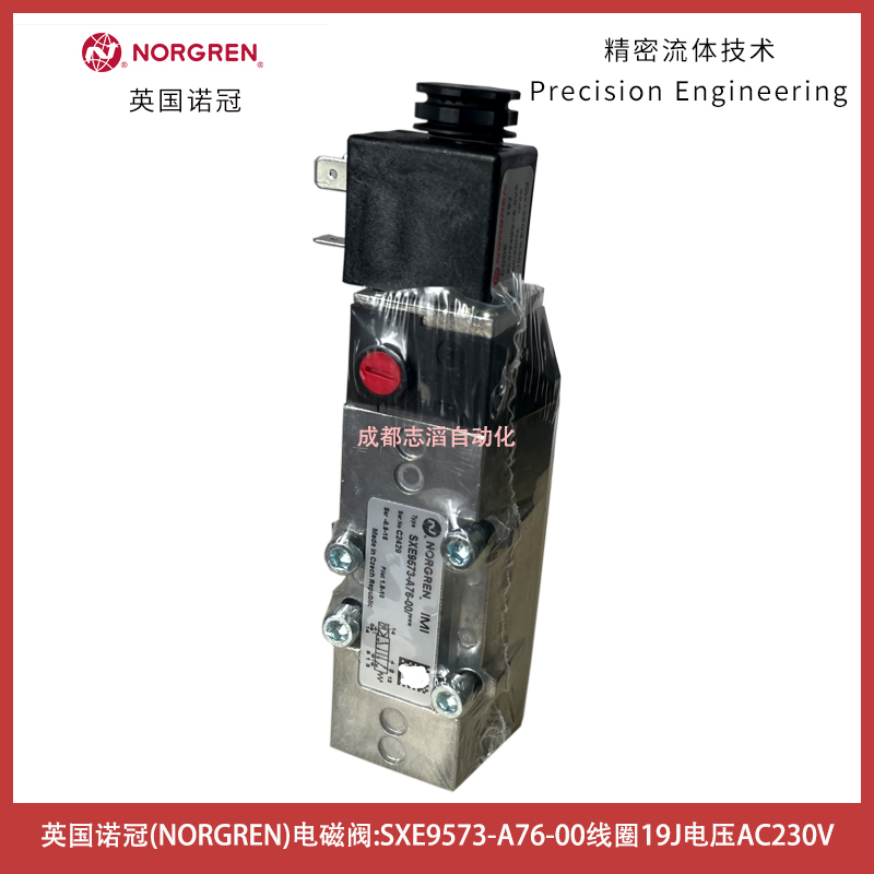 SXE9573-A76-00线圈19J电压AC220V英国诺冠NORGREN电磁阀-IMI埃迈技术参数:属于ISO1#阀、流量1230l/min、工作压力1.8-10bar,阀体重量0.33kg、配诺冠普通22mm线圈、电压220VAC!应用行业:水泥生产线设备控制!