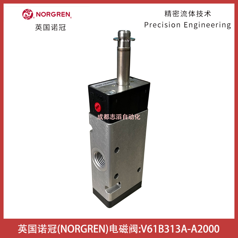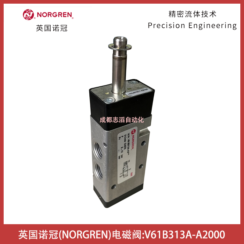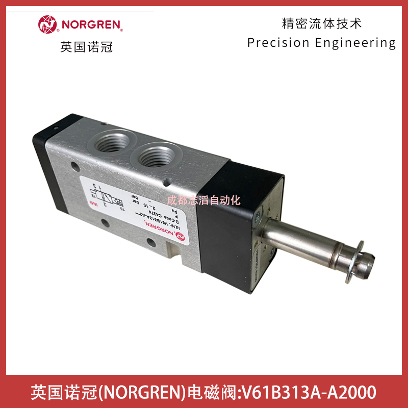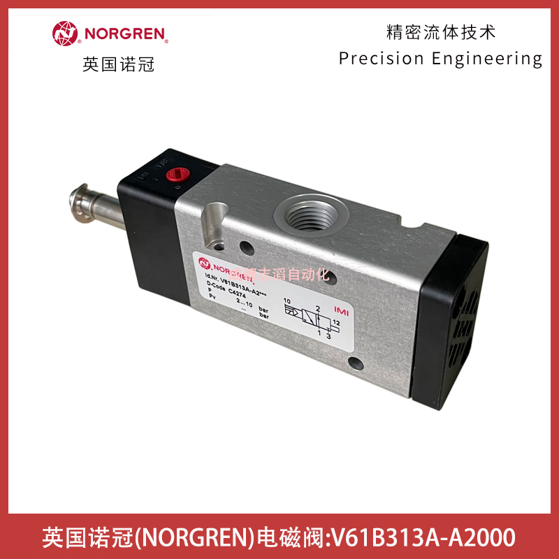 V61B313A-A2000英国诺冠管式连接阀NORGREN电磁阀-IMI埃迈海隆技术参数:功能为NO、接口为G1/4、驱动方式为电控/气复位、先导供气内先导、先导排气非集中供气、流量1300l/min、工作压力2-10bar、阀体重量0.29kg、